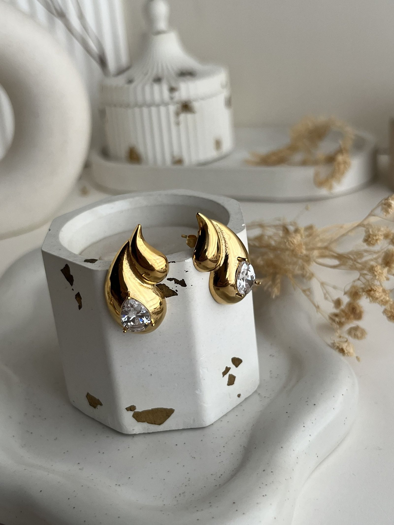 These wing-inspired stud earrings feature a flowing twin-curve form paired with a polished gold-tone surface and a central cubic zirconia accent that adds refined brilliance. Designed with smooth contours for comfortable wear, they style effortlessly with both casual outfits and elevated looks, while the titanium stainless steel base provides lasting durability, tarnish resistance, and long-term shine for regular use.