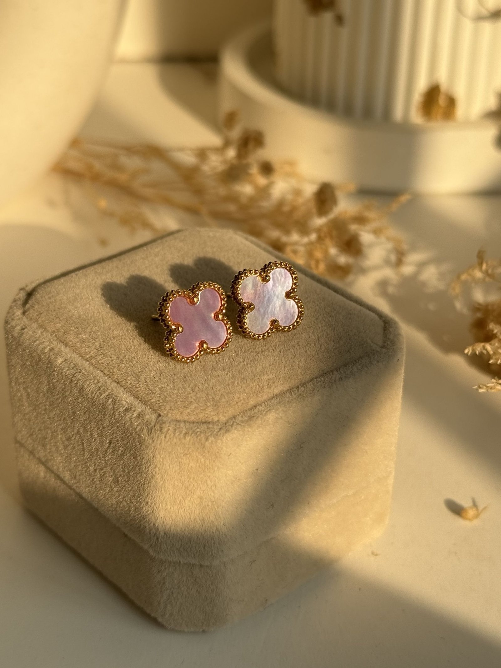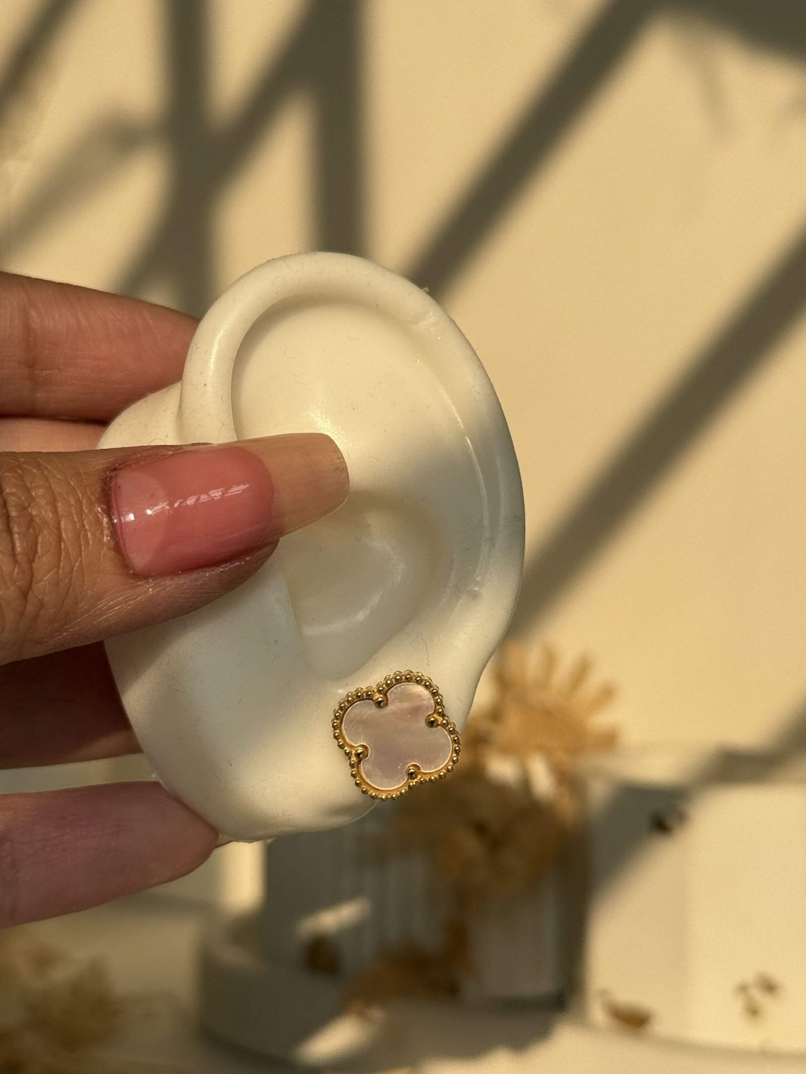 These refined clover-inspired stud earrings showcase a signature four-petal silhouette enhanced with textured inlay detailing and a delicate beaded edge finish that adds depth and elegance. Crafted from high-quality titanium stainless steel, they offer superior durability, tarnish resistance, and long-lasting shine. Designed with a secure butterfly push-back closure, this pair ensures comfortable wear throughout the day while elevating both casual and formal looks with a sophisticated luxury touch.