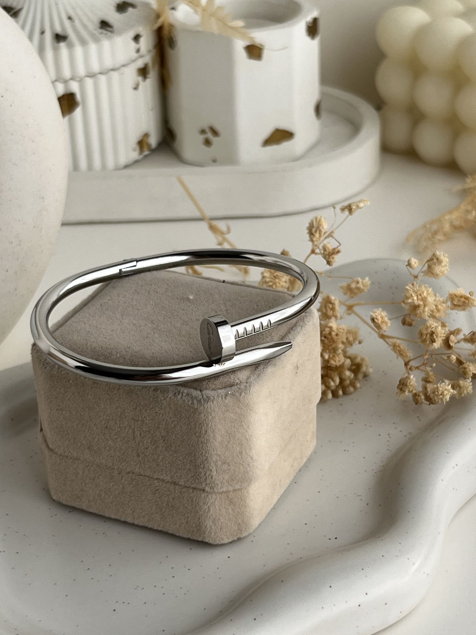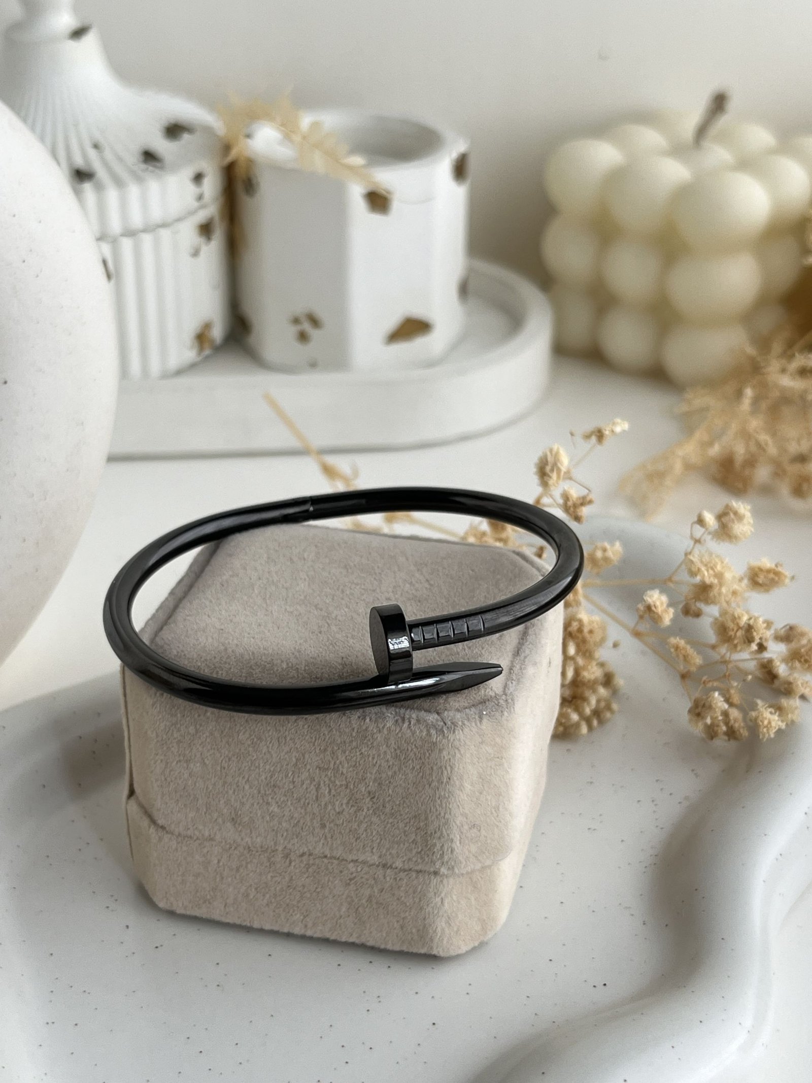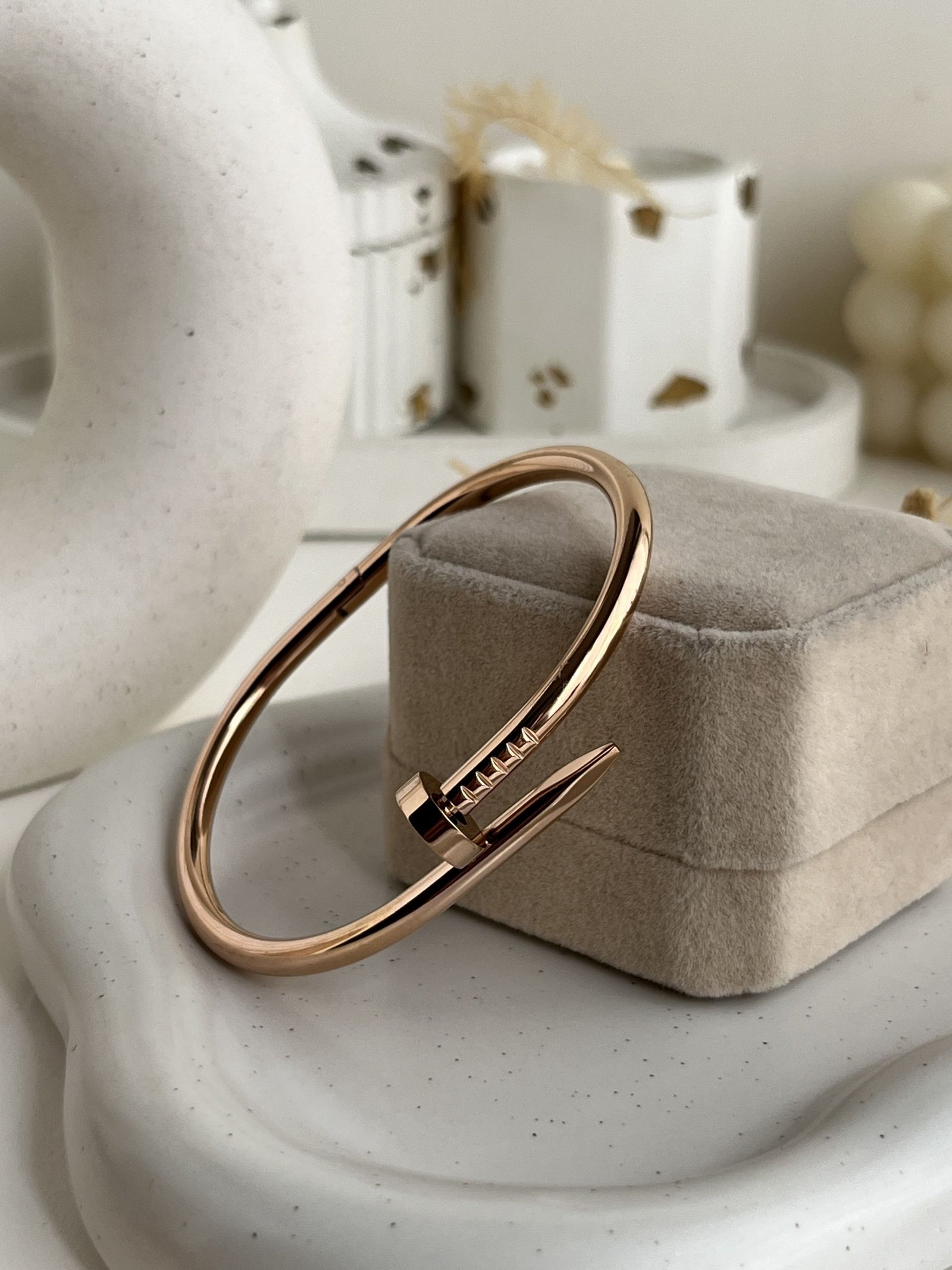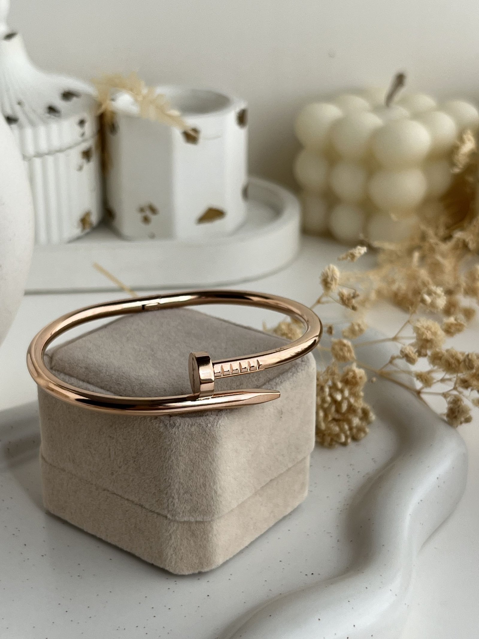 Aurex Nail Signature Cuff features a clean nail-inspired design with a smooth polished gold-tone surface that delivers a modern luxury aesthetic. The fluid curved structure creates a strong visual statement while maintaining an elegant profile suitable for both everyday wear and elevated styling.