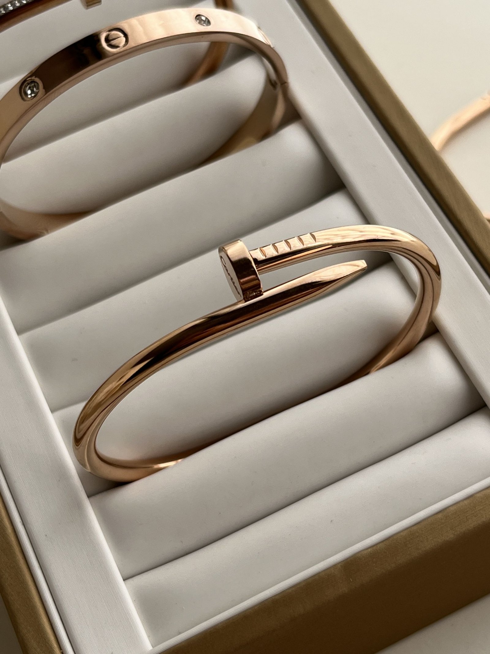 Its rigid oval structure provides balanced weight distribution and comfortable wrist placement. Designed to be worn solo as a statement cuff or layered with slim bangles for contrast. Crafted from titanium stainless steel with gold plating, offering durability, tarnish resistance, and long-lasting color performance with proper care.