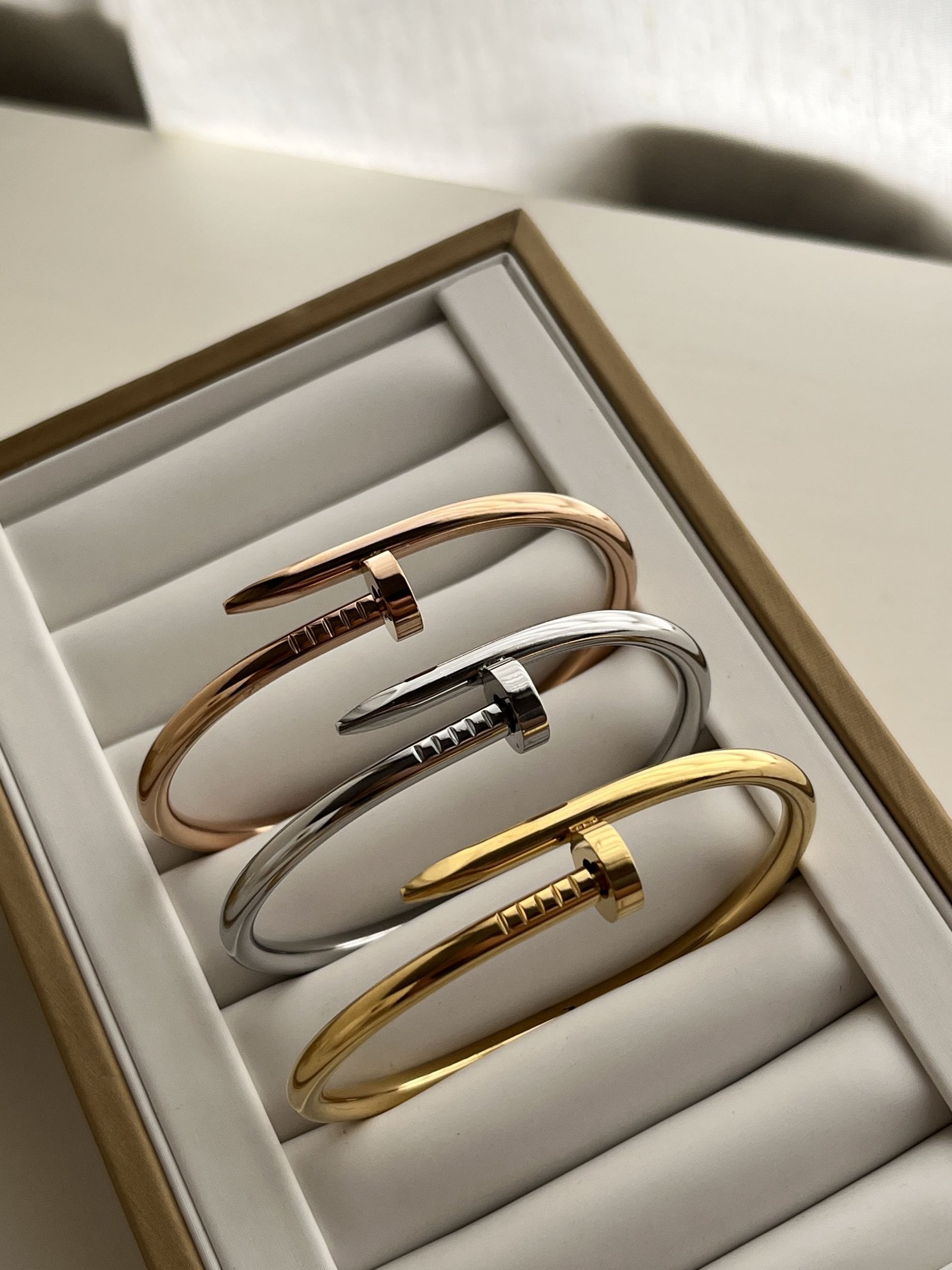 Aurex Nail Signature Cuff presents a sleek nail-inspired silhouette finished in polished gold tone for a bold yet refined statement.