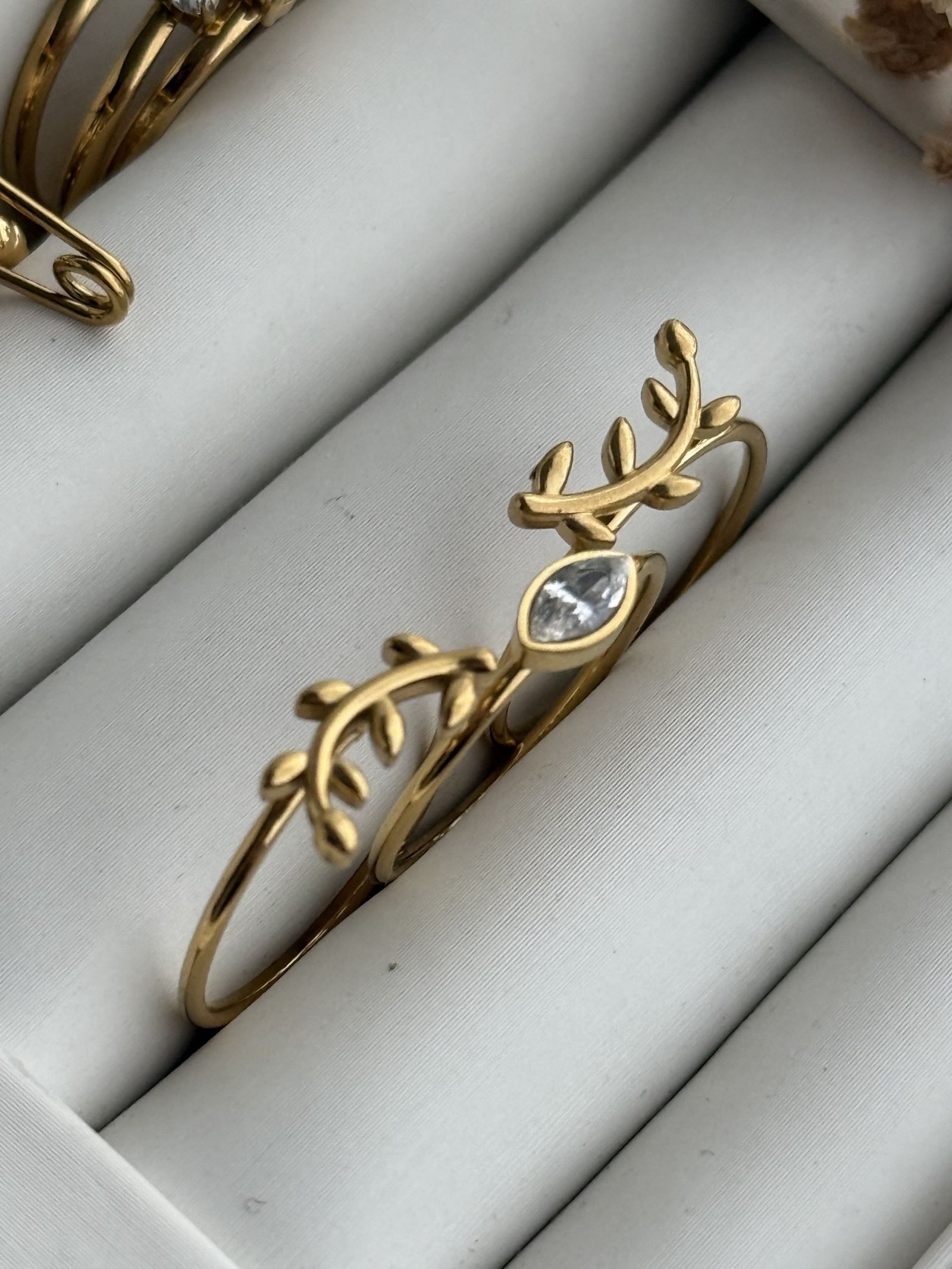 The Aurielle Zircon Layer Ring features an elegant multi-band structure paired with a softly contoured oval zircon centerpiece that adds subtle brilliance and dimension. Finished in a smooth gold-plated titanium stainless steel surface, this ring delivers a balanced blend of modern structure and delicate detailing. Designed for comfortable daily wear, it transitions seamlessly between minimal solo styling and stacked combinations while maintaining durability and lasting shine.