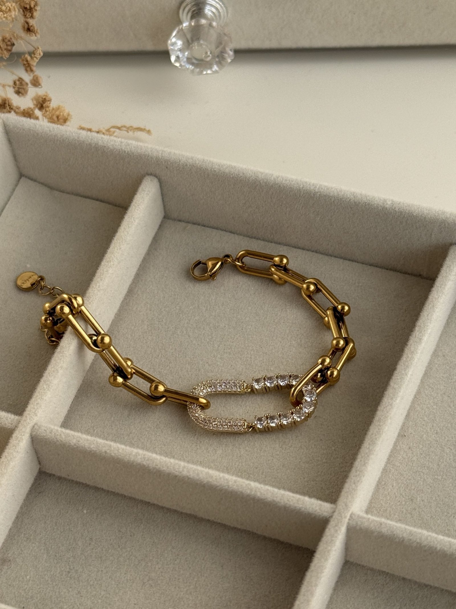 Made from titanium stainless steel with a durable gold-tone plating, this bracelet offers long-lasting shine, resistance to tarnish, and everyday durability with proper care.