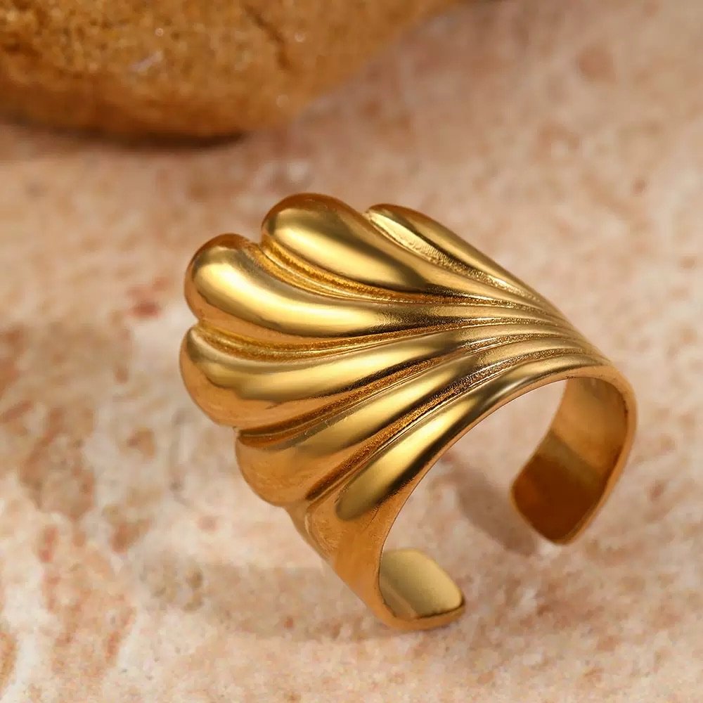The Sculpted Wave Open Ring is designed with fluid curves that create a modern, architectural look inspired by natural motion and elegance. Crafted from premium titanium stainless steel, this ring offers durability, tarnish resistance, and long-lasting shine. Its open adjustable structure ensures a flexible and comfortable fit, making it perfect for everyday wear or elevated styling. A timeless statement piece that pairs beautifully with both minimal and bold outfits.
